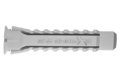 Anclaje eXtreme One para materiales sólidos y huecos. Ideal para cargas medias y ligeras, fabricado en poliamida de alta calidad (PA 6.6). Su brida extrafina se puede convertir en un anclaje sin brida.Las cuatro zonas de expansión multidireccionales garantizan un mayor agarre, optimizan la capacidad de carga y garantizan una fijación segura incluso en las situaciones más extremas.