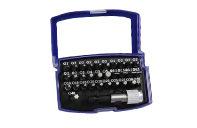 Juego de 32 puntas de 25 mm diseñadas para usarse con taladros de destornillador, fabricadas en acero S2 forjado en frío para mayor durabilidad y resistencia.